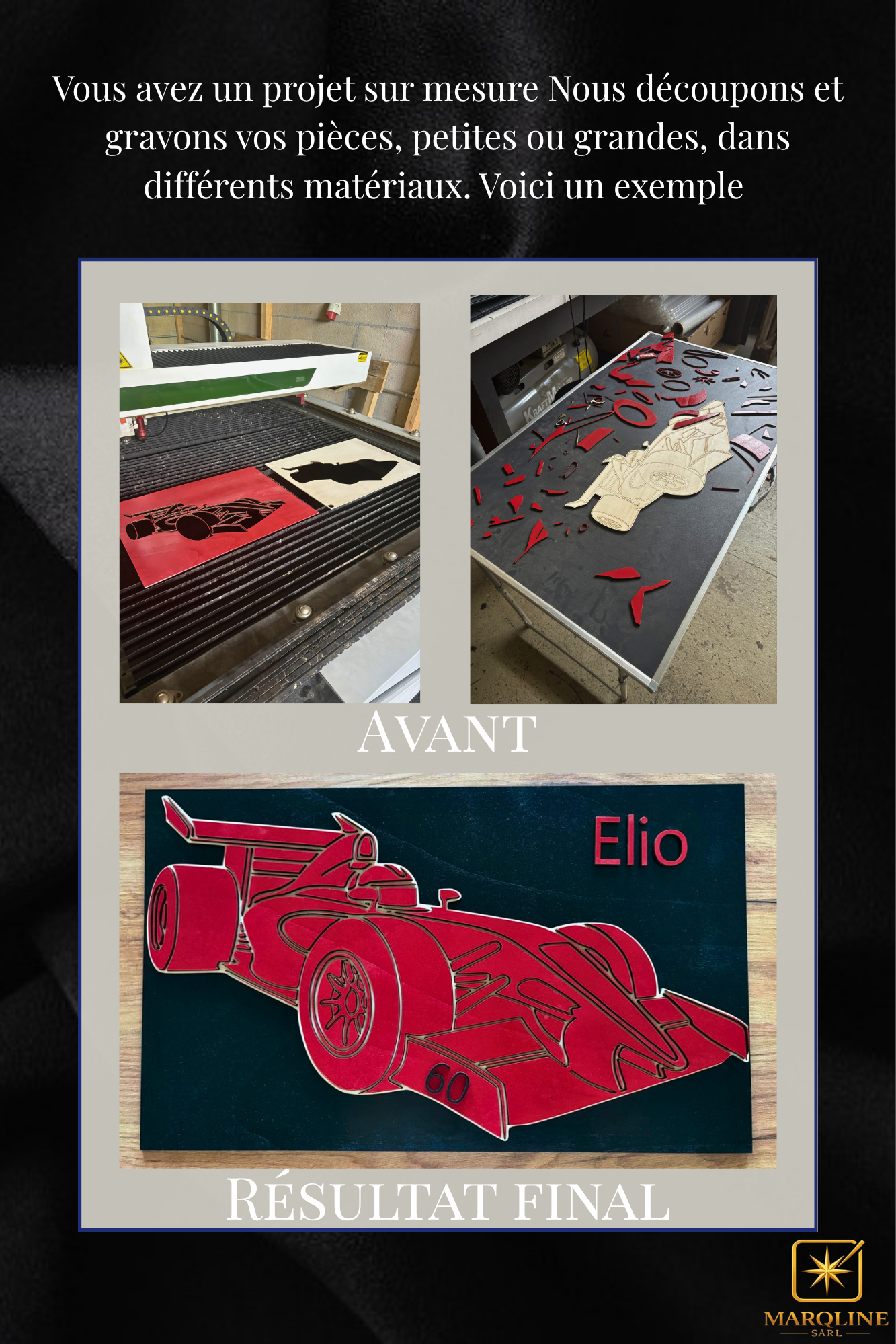 Transformez vos idées en réalité avec Marqline. Nous vous garantissons des réalisations de haute qualité, une précision inégalée et un service personnalisé pour chaque projet.